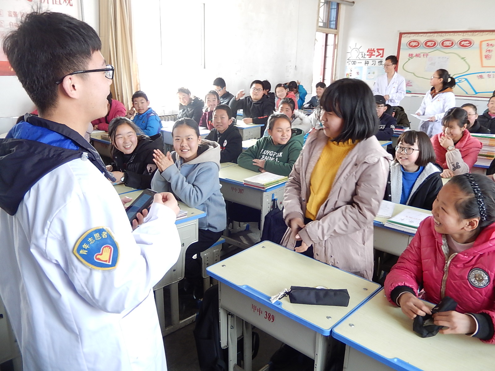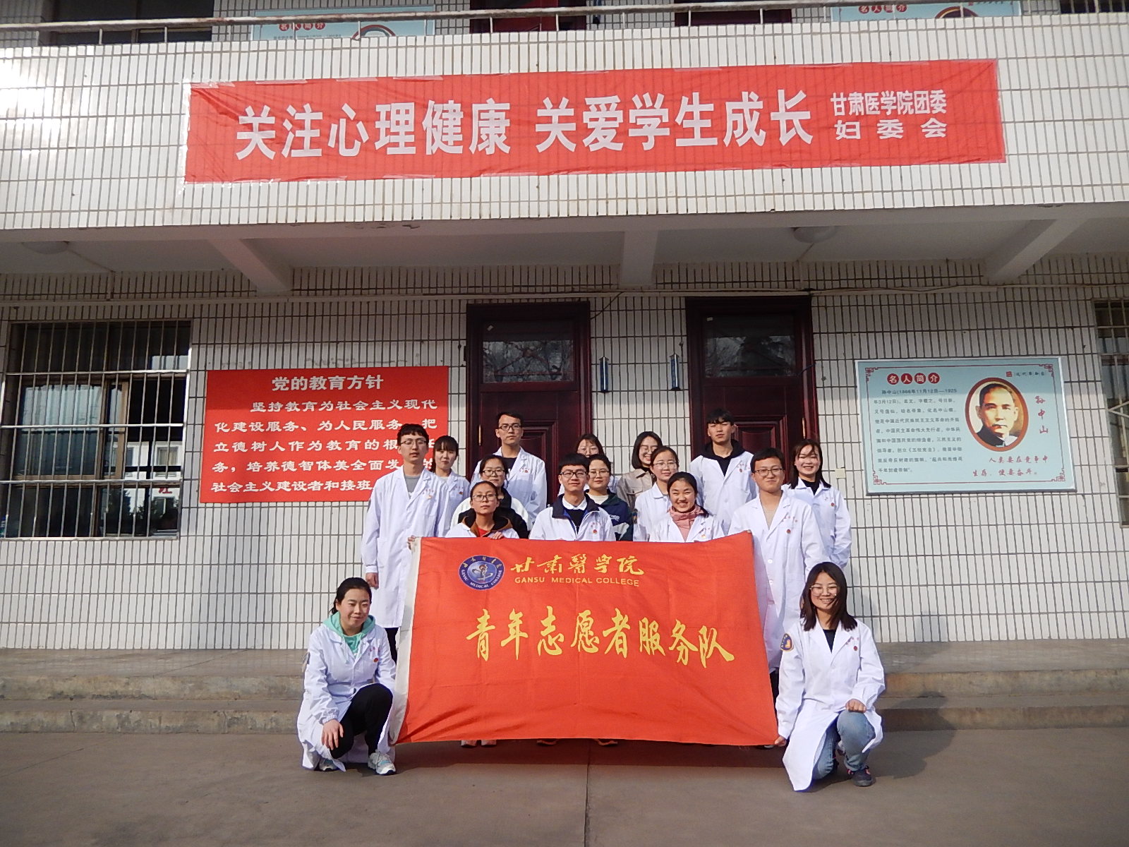 3月6日下午,在甘肃医学院团委和妇委会的组织下,我院的青年志愿者们赴平凉市崆峒区甲积峪中学开展了以“关注心理健康,关爱学生成长”的为主题的志愿服务活动。
