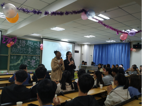 为了提高同学们在学习上的积极性,拓宽知识面,英语角于2019年3月30日19:00-20:20在一号教学楼A座第2大教举办了英语知识竞赛。英语教研室主任郝力老师、外教老师Talisaw、外教老师Diana、英语角指导老师陈俐彤老师、校学生会副主席安宁、社团部部长杨慧,药学系副主席陈增华、中医药系主席吴鹏雄、各社团负责人、120多名同学以及英语角各负责人参与了本次活动。