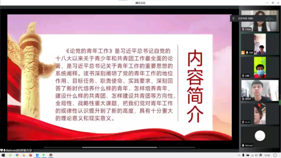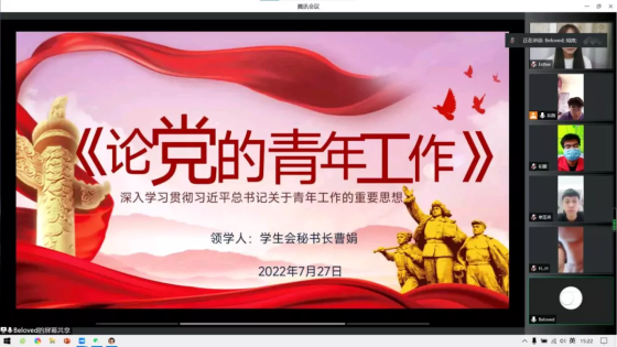 为深刻贯彻落实习近平同志《论党的青年工作》,以及习近平同志关于青年思想的重要指导,从中解锁成长成才的“精神力量”,甘肃医学院学生会全体工作人员于2022年7月27日下午15:00以线上会议的方式组织召开了专题主义学习会议,学习了习近平同志《论党的青年工作》,此次会议由甘肃医学院学生会秘书长曹娟主持。