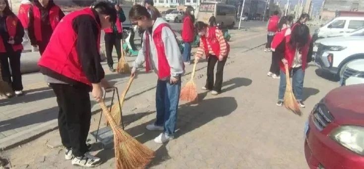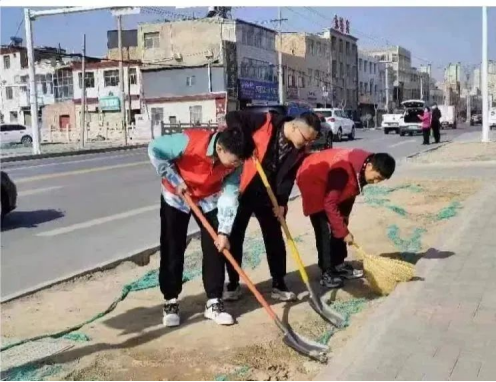 他们分工明确,配合默契。有的捡拾花园内的杂物,清除杂草;有的挥舞扫帚清扫道路;有的忙着倾倒垃圾,不放过任何一处死角……经过大家的辛勤劳动,学校周边城区环境再次整洁有序。