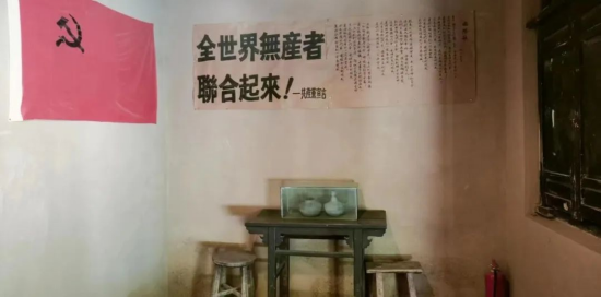 纪念馆的角角落落,都弥漫着浓厚的革命氛围。墙上印着的的一句话吸引力队员的注意:“全世界无产者,联合起来!”这句话来自《共产党宣言》,斑驳和做旧残缺的痕迹,象征着无数无产阶级受到激励,挣脱枷锁,奋起反抗,在坍塌废墟上建立起新社会,扛起工人阶级的鲜红旗帜,呼吁全世界的无产者联合起来,为一个更加光明而美好的未来社会而努力奋斗。