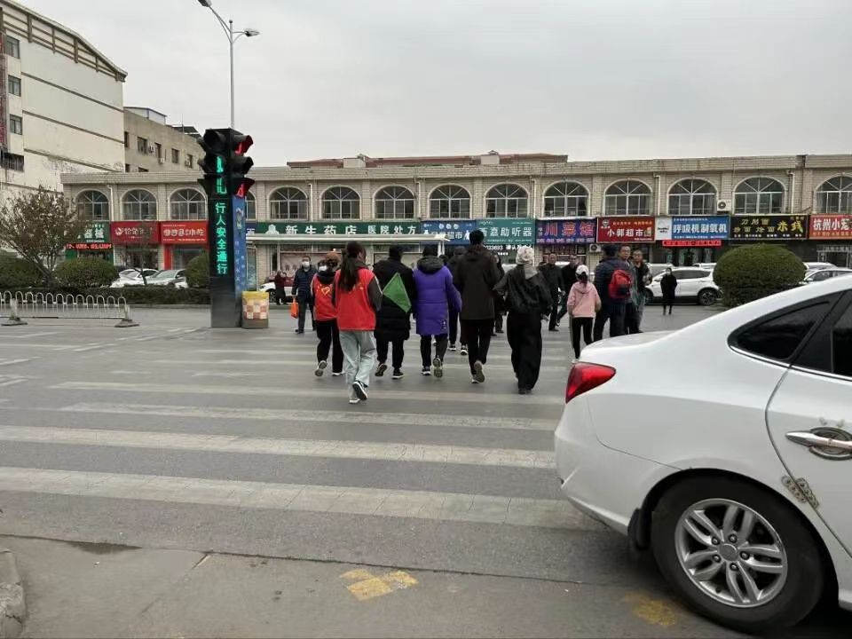 在甘肃医学院附属医院路口开展文明交通劝导,重点对行人闯红灯、不走斑马线、非机动车不按规定行驶等不文明行为进行劝导。