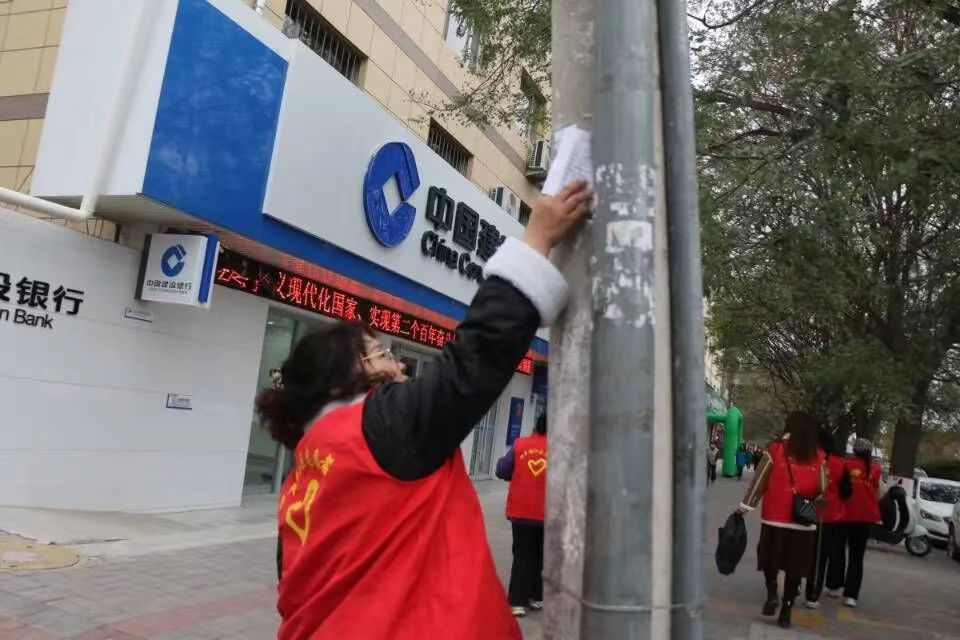 在单家川小区道路周边,对背街小巷乱堆乱放、乱悬乱挂、乱贴乱画、乱扔乱倒、乱停乱放等影响市容市貌现象进行了集中整顿,并清理墙体、灯杆、箱体及其他沿街设施上的各类“牛皮癣”小广告。