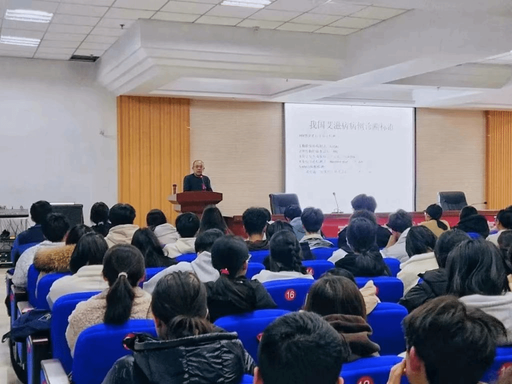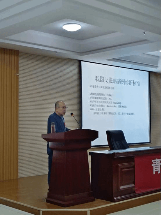王植霖医生作为本次活动的主讲人,从艾滋病的基本概念、艾滋病的流行现状、艾滋病的预防措施、艾滋病防控的关键环节--检测以及学校艾滋病防控六个方面,向同学们做出了具体详细的讲解。
