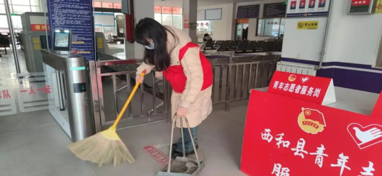 “每次从不可知的旅途归航,都有辉煌的灯火,在黑夜中等待我们,那就是我们的家”。为了让旅客的出行更便捷、更温暖,青年志愿者刘淑婷同学为旅客答疑解惑,搬运行李。同时,刘淑婷同学还主动打扫车站的环境卫生,给家乡的父老乡亲们带来了一份冬日的温暖。