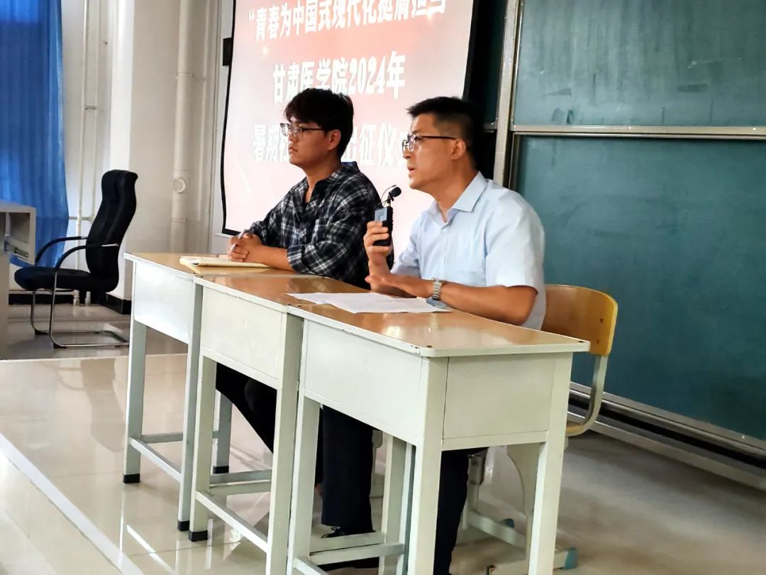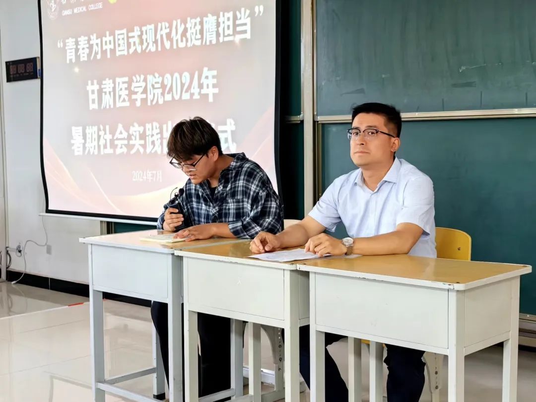 为学习贯彻习近平新时代中国特色社会主义思想,学习宣传贯彻习近平文化思想,发挥共青团实践育人在“大思政”工作体系和“三全育人”工作格局中的重要作用,7月10日,甘肃医学院2024年暑期“三下乡”社会实践出征仪式在B8大教举行,团委社团部部长黄勇强老师和各院系"三下乡"社会实践活动负责人共同参与,总计300余人。