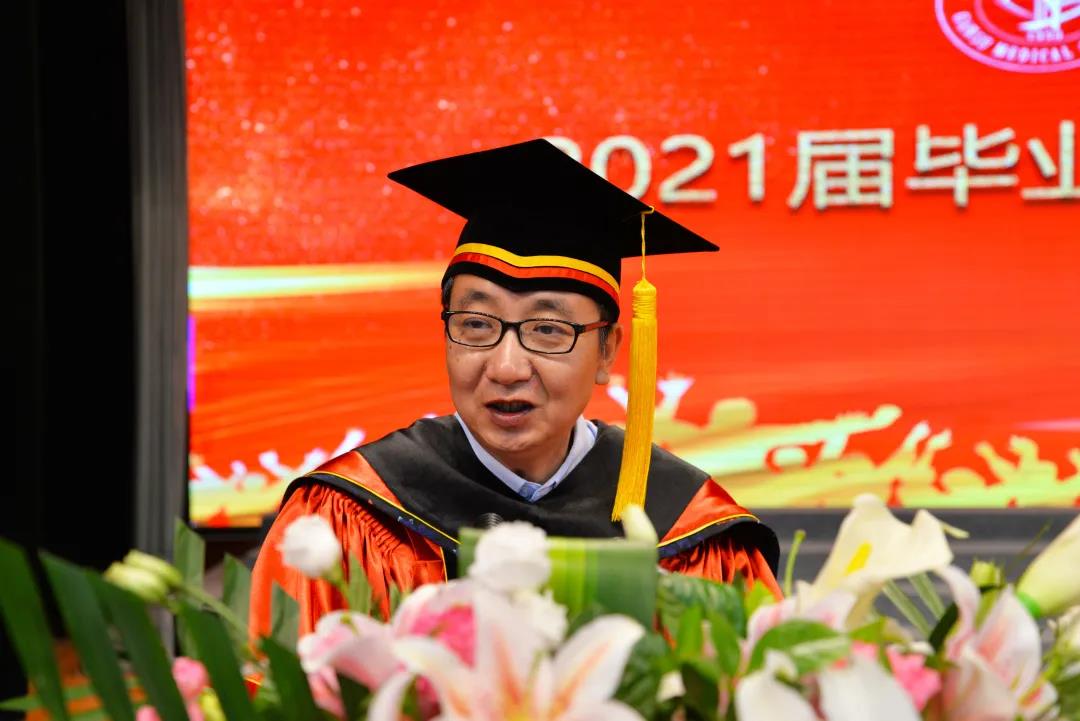 7月2日,学院隆重举行2021届毕业生毕业典礼暨学位授予仪式。学院党委书记高淑美出席典礼,院长王坤向2021届全体毕业生致辞,党委副书记,副院长崔安平主持典礼,副院长李诚,纪委书记杨建福,副院长、附属医院党委书记雷鹏举出席典礼。