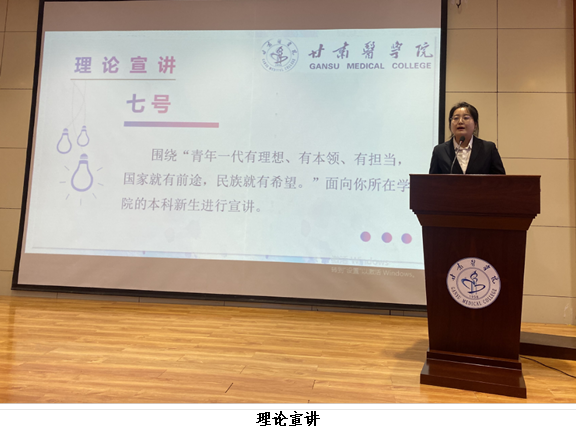 理论宣讲环节中,参赛选手围绕马克思主义理论、习近平新时代中国特色社会主义思想、党的十九届五中、六中全会精神、党史等的学习宣传阐释能力,以及对大学生开展理想信念教育、中国特色社会主义和中国梦宣传教育、社会主义核心价值观教育过程中的理论宣传阐释能力,主要考察班主任、辅导员的政治性、思想性、理论性、政策性、导向性。比赛中,选手们以扎实的理论功底、过硬的心理素质、生动的身边故事让“高大上”的理论变得“接地气”,展现了选手们良好的职业素养。