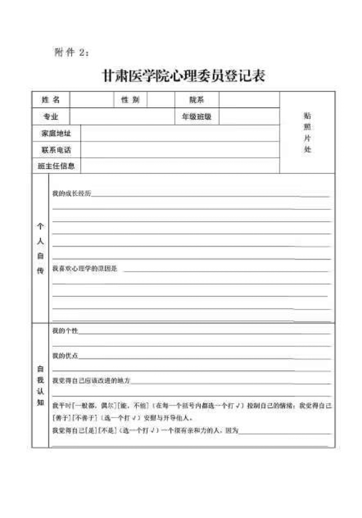 附件2:甘肃医学院心理委员登记表