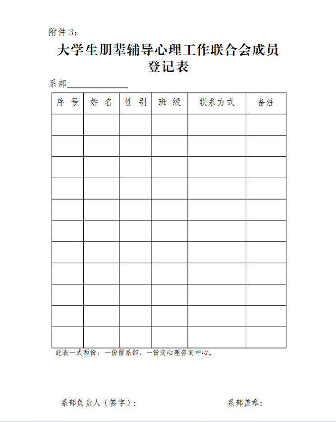 附件3:大学生朋辈辅导心理工作联合会成员登记表