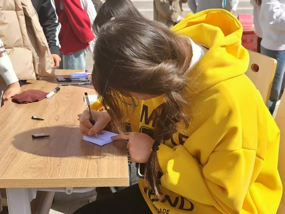 师生们纷纷在签名板上郑重地签下自己的名字,许下心灵康复的心愿和祝福。