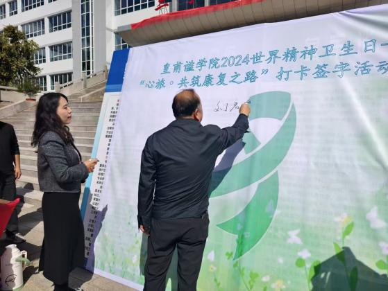 倡导心理健康,共筑精神乐园。皇甫谧学院于2024年10月10日中午12点在三号教学楼前举办“心旅·共筑——康复之路”打卡签字活动。参加此次活动的领导老师有皇甫谧学院院长刘君奇、副院长宋巧、心理咨询中心张茜茜老师、王利军、赵敏、杨月园老师及皇甫谧学院全体在校学生。此次活动旨在提高当代大学生对精神卫生重要性和迫切性的认识,普及精神卫生知识,共建和谐校园。