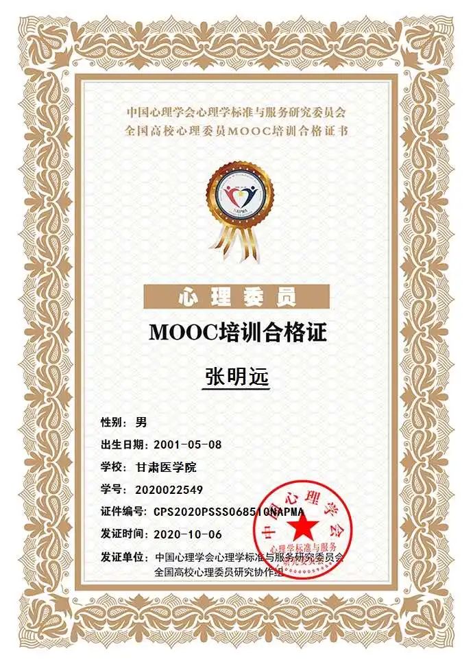 当然,作为心理委员,肯定是通过了心理委员的相关培训,并且获得了相关证书。