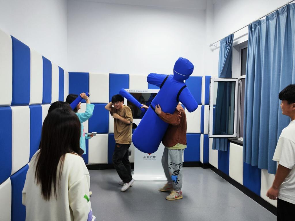 此外,学生们还在心理咨询中心参与了一系列互动体验活动。例如,在音乐放松室,学生们不仅可以尝试通过音乐来放松身心,感受音乐疗法的独特魅力。同时,还可以通过摆放沙具来表达自己的情感和想法,进一步探索自己的内心世界。在VR虚拟体验室,学生们可以通过绘画系统描绘内心压抑的情绪、想法,让心灵得到治愈。在情绪宣泄室,学生们可以通过宣泄墙、宣泄器材,将烦恼一扫而空。