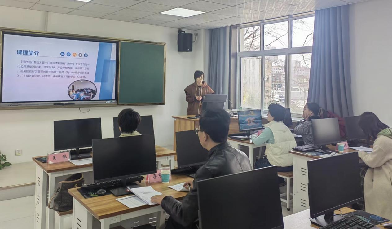 信息中心教研室主任李彩雁就《程序设计基础》课程的教学团队、教学条件、教学改革、教学效果、教学管理、课程特色六个方面进行了课程汇报。