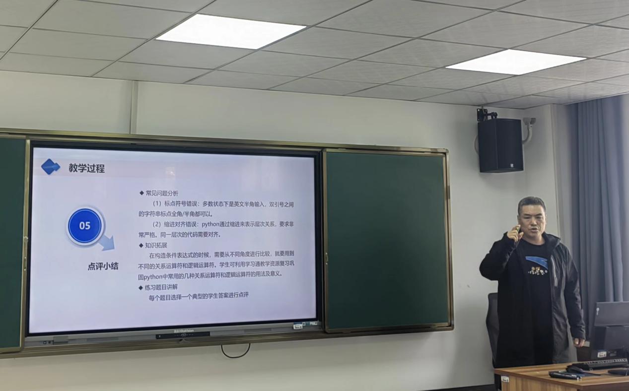 信息中心刘金虎老师就《Python程序设计基础》的结构化程序设计从选择结构,教材分析、学情分析、教学目标、教学过程、教学反思五个方面进行了说课。