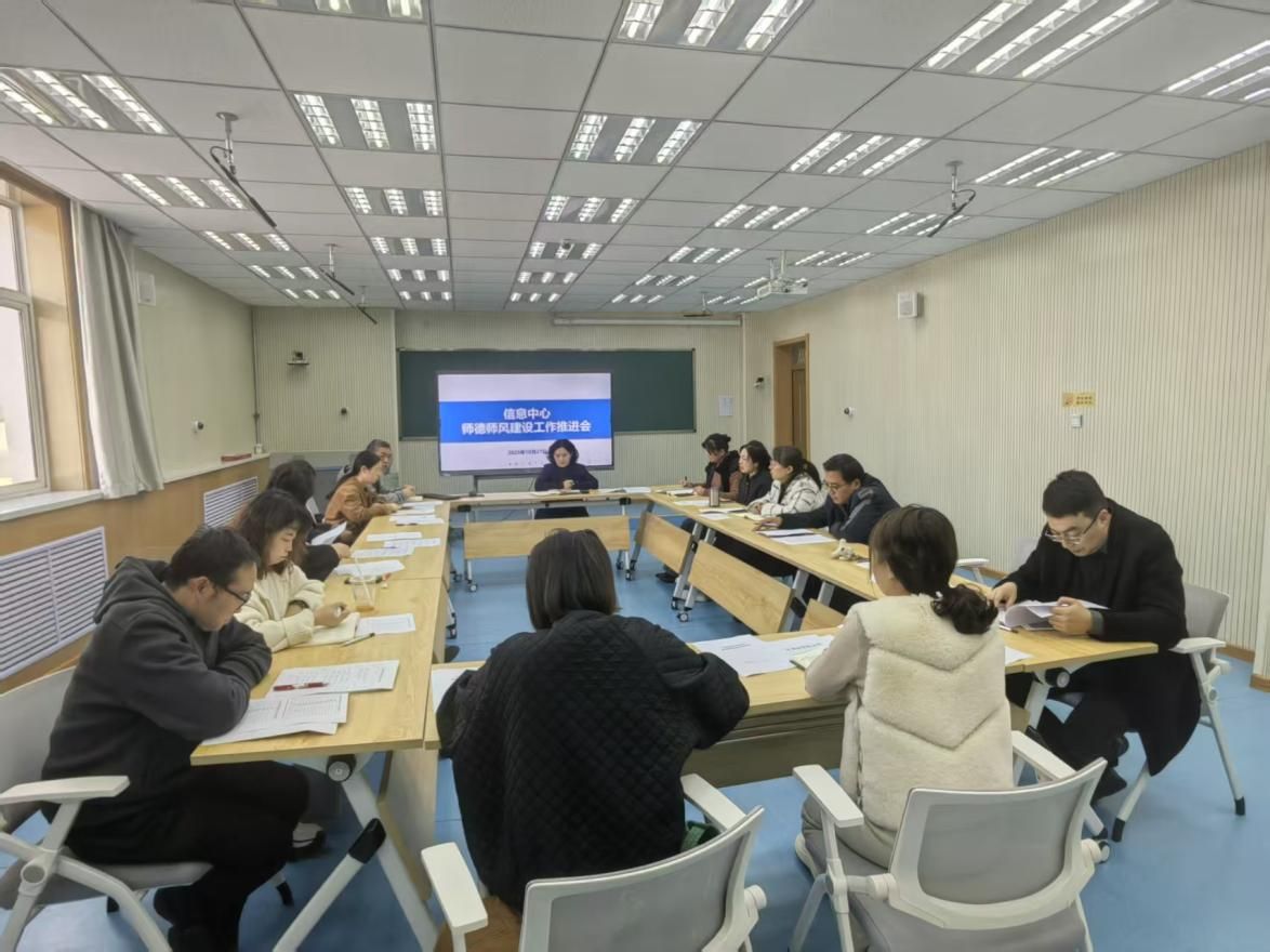 2025年10月27日信息中心召开师德师风建设工作推进会议,组织全体教职工学习《甘肃医学院关于进一步加强和改进新时代师德师风建设实施方案》,信息中心主任魏葆春主持会议。