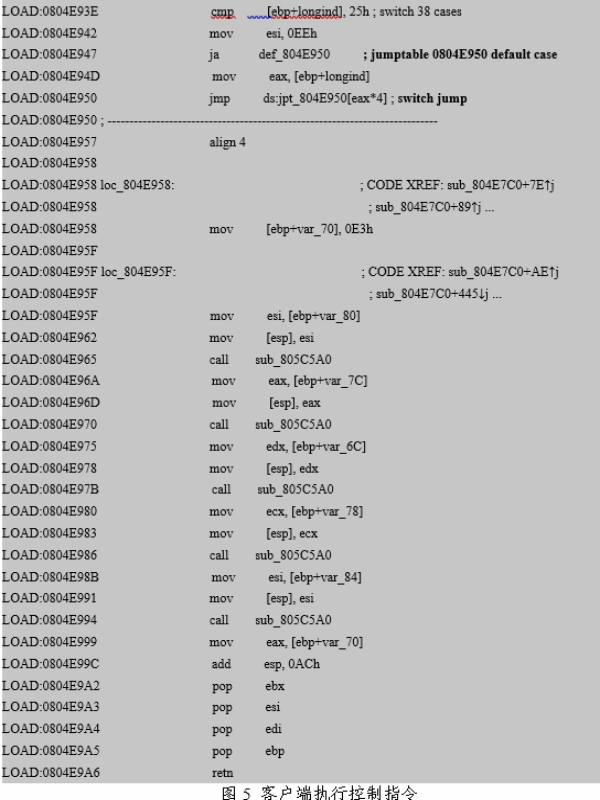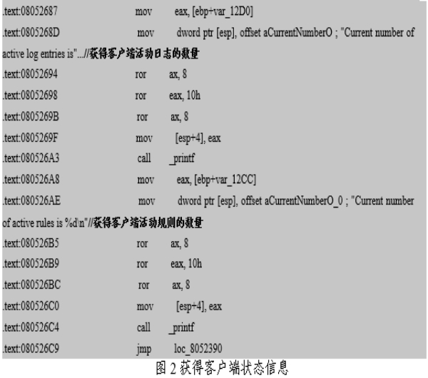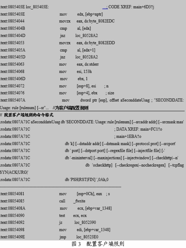从分析结果看,客户端被植入并配置相应规则后,可以在网络设备后台静默运行,攻击者可以使用服务器端进行控制也可以直接登录到网络设备后台进行命令控制。如表2、图4、图5和图6所示。