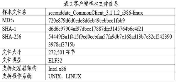 “二次约会”(SecondDate)间谍软件支持在Linux、FreeBSD、Solaris、JunOS等各类操作系统上运行,同时兼容i386、x86、x64、SPARC等多种体系架构,适用范围较广。