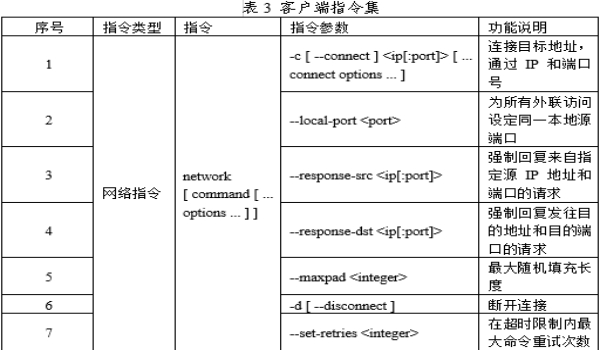 经分析,客户端支持的主要指令及其功能说明如表3所示。