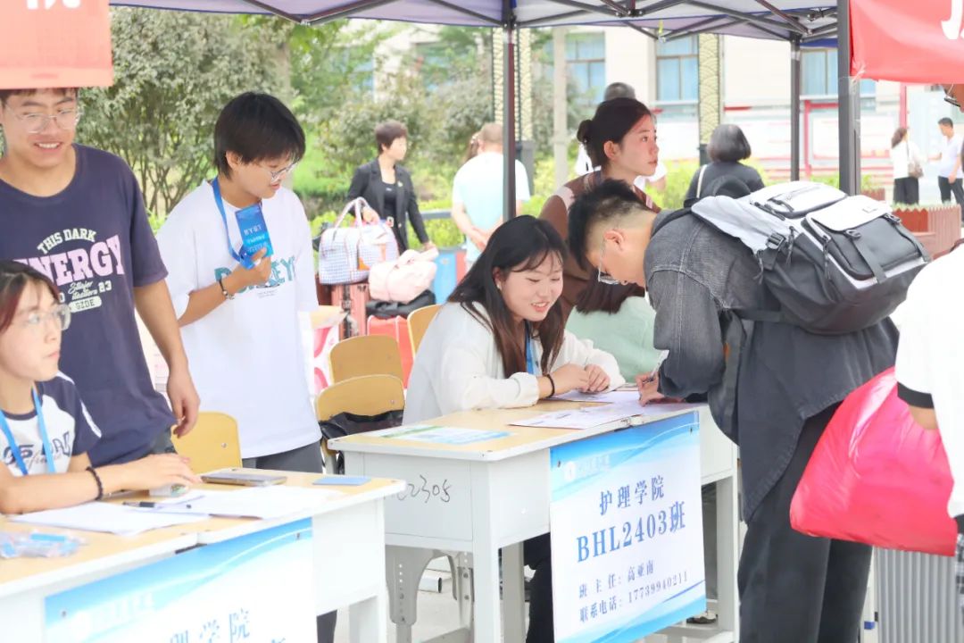 各相关部门、学院主要负责人坚守在迎新岗位一线,党员先锋岗、身穿红马甲的志愿者爱心护航……各项工作有条不紊地进行。为确保新生安全到达,学校还安排专人专车不间断往返于火车站、汽车站与学校之间,接送新生,设置休息区,提供茶水休憩。