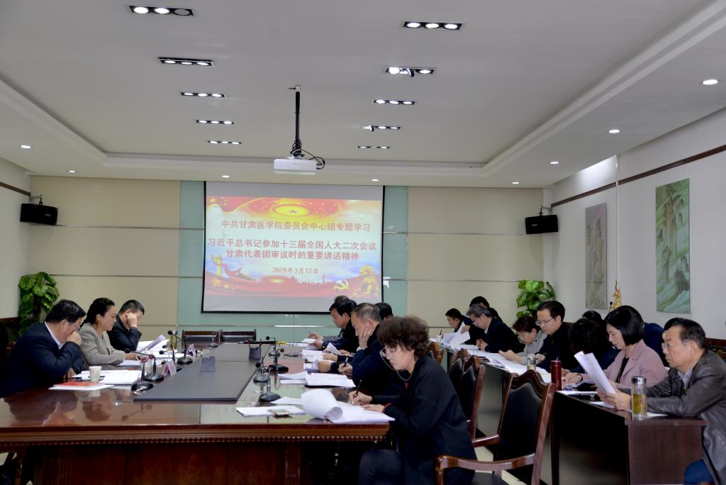 2019年3月12日下午,甘肃医学院党委书记高淑美主持召开专题会议,传达学习习近平总书记在十三届全国人大二次会议甘肃代表团审议时的重要讲话精神,安排部署学院脱贫攻坚工作。