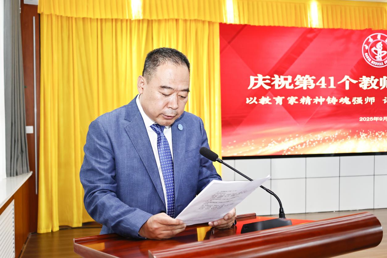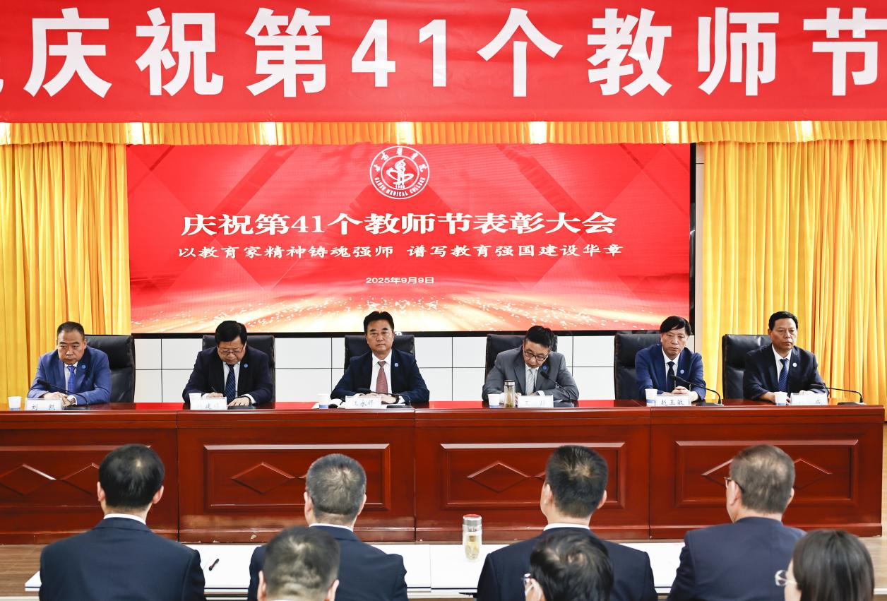 秋韵荡漾,硕果飘香。9月9日下午,学校在3号教学楼6楼会议室召开庆祝第41个教师节表彰大会,向辛勤耕耘在教学、管理、服务和医疗岗位的全体教职医护员工致以节日的诚挚问候和崇高敬意,并对过去一学年中涌现出的先进集体和优秀个人进行表彰,激励广大教职员工“以教育家精神铸魂强师,谱写教育强国建设华章”,为中国式现代化甘肃实践提供人才支撑。党委书记汪永锋出席会议并讲话,校长王坤主持会议,在家校领导、全体处科级干部、校本部无课教师,附属医院及非直属附属医院医护人员代表参加会议。