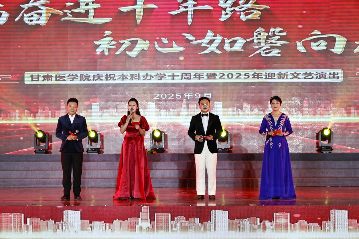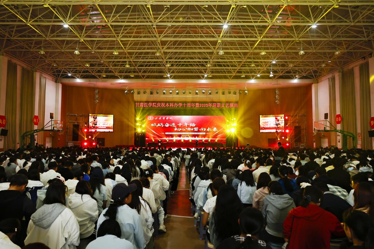 9月26日,甘肃医学院本科办学十周年暨2025年迎新文艺演出在学校体育馆举行。甘肃中医药大学、宁夏医科大学、陇东学院、甘肃省卫生职业技术学院、兰州科技职业学院等兄弟院校领导、学校在家领导、全体处科级干部,学校退休干部、教师代表,校友和师生代表欢聚一堂,共同回顾十年砥砺奋进的办学历程,展望未来发展的崭新蓝图,并以精彩纷呈的文艺节目欢迎2025级新同学的到来。