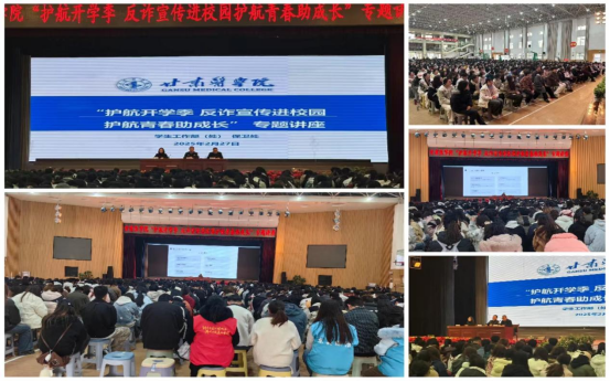 为进一步增强学生反诈防骗意识,提高自我识骗防骗能力,构建和谐稳定校园,2月27日,学校联合平凉市公安局崆峒分局反诈中心及保丰路社区居委会在体育馆举办了“护航开学季,反诈宣传进校园,护航青春助成长”为主题的春季学期开学反诈“第一课”。全体班主任、辅导员及无课班级学生共计1500余人聆听宣讲报告。