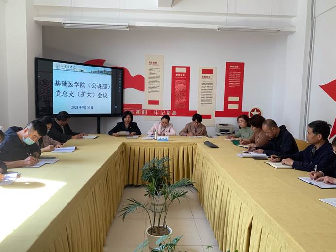 9月30日上午,学院党委书记高淑美作为党委书记和班子成员联系基层党组织的领导,出席基础医学院(公课部)党总支第二次党总支扩大会议,基础医学院(公课部)党总支书记周凤娟主持会议。