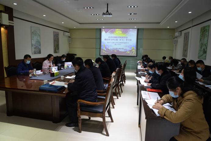 高淑美强调,学院上下要把学习宣传贯彻全会精神,同学习前两个历史决议、学习习近平总书记“七一”重要讲话精神、学习习近平总书记关于党的历史的一系列重要论述、学习习近平总书记对甘肃重要讲话和指示精神,以及党史学习教育和高质量完成年度工作任务结合起来,把全会精神转化为指导实践、推动工作的强大动力。全体党员干部要大力弘扬伟大建党精神,勿忘昨天的苦难辉煌,无愧今天的使命担当,不负明天的伟大梦想,牢记为党育人、为国育才的初心使命,以史为鉴、开创未来,埋头苦干、勇毅前行,紧扣高质量发展的时代主题,进一步发展更高质量的教育,为实现第二个百年奋斗目标、实现中华民族伟大复兴的中国梦做出新的更大贡献。