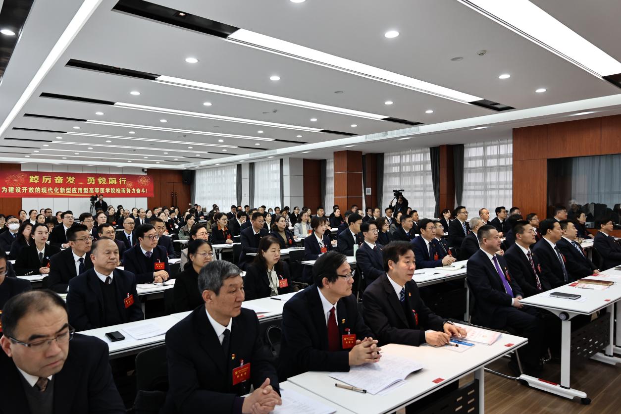 大会的主题是:高举中国特色社会主义伟大旗帜,以习近平新时代中国特色社会主义思想为指导,全面贯彻党的二十大精神和习近平总书记关于教育的重要论述,坚持立德树人根本任务,勇担教育强国建设使命,深化改革,提升内涵,扩大开放,加快发展,为建设开放的现代化新型应用型高等医学院校而努力奋斗。