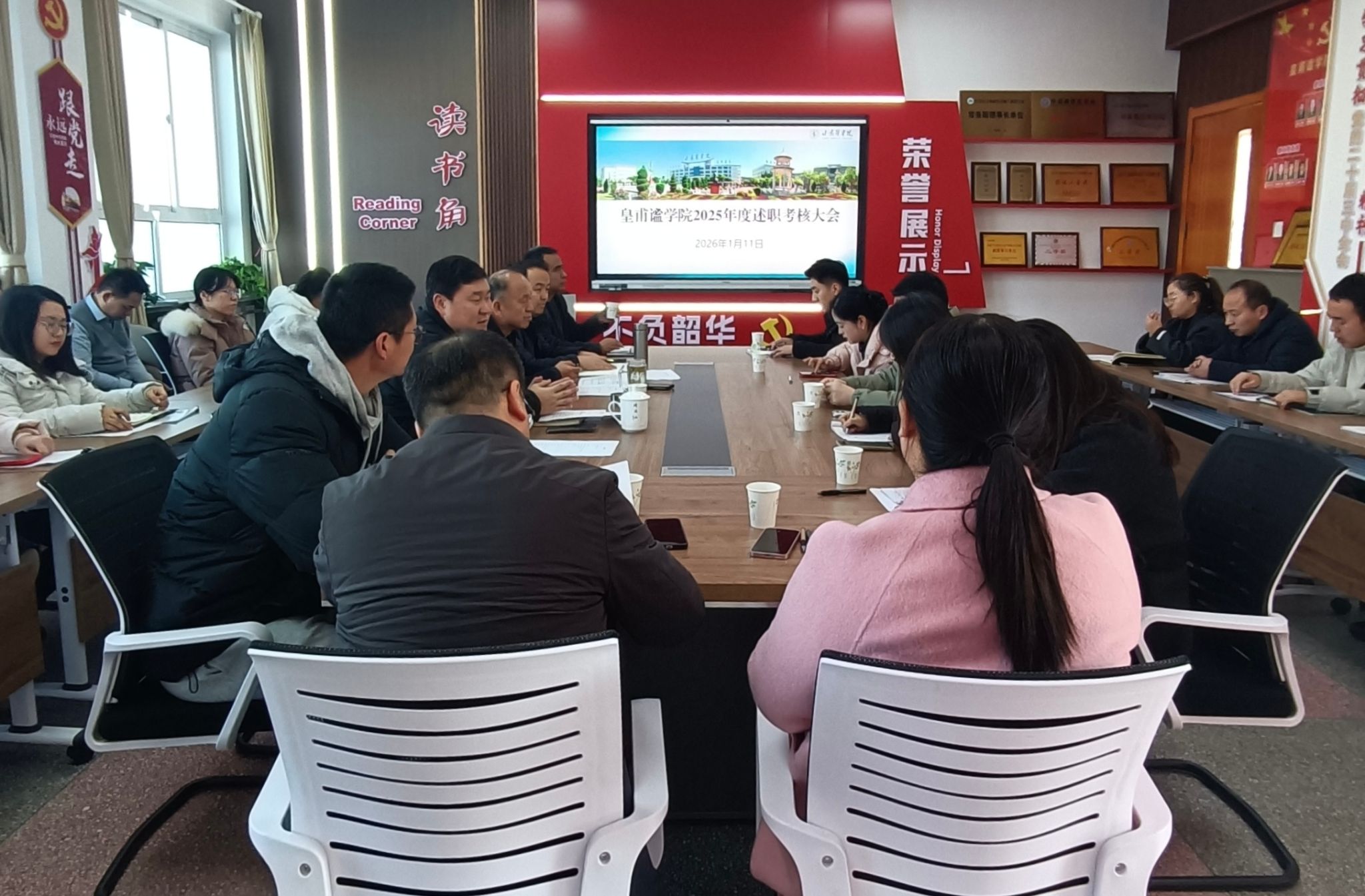 为全面总结2025年度工作成效,客观评价教职工履职情况,皇甫谧学院于1月11日召开了2025年度述职考核大会,学院领导班子成员及全体教职工参会,会议由院长刘君奇主持。