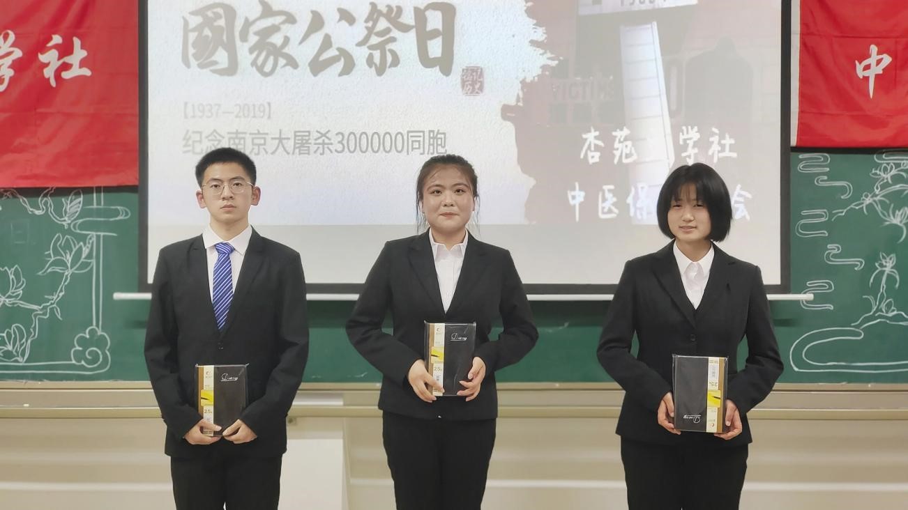 2021.11.30.《杏苑》文学社与中医保健协会在新教A座第十三小教举办了“国家公祭日”演讲活动的初赛。共有35位参赛者参加,在进行淘汰后有15人进入决赛.