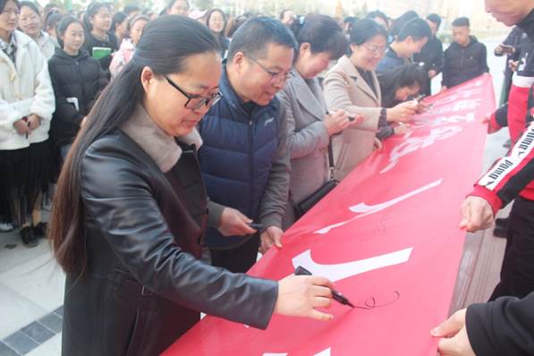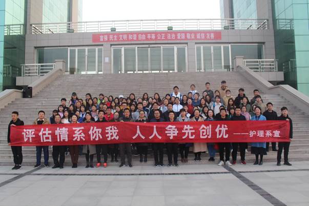 为了以最好的学风状态、最好的精神面貌迎接我校首届本科毕业生教学质量考核验收,切实推进学院建设更上新台阶,2019年3月28日上午7时,护理系举行了“评建情系你我 人人争先创优”的动员签名活动。护理系党总支负责人王萍老师、团总支书记李红强老师、各年级主任、班主任、辅导员、全体在校学生参加了本次活动。