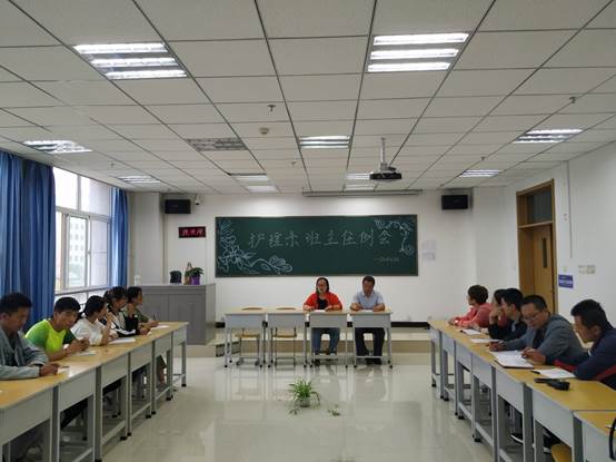 甘肃医学院护理系于2019年6月23日在二号教学楼B座第六小教举行班主任例会,参与会议的有护理系党总支负责人王萍、护理系团总支书记李红强、16级年级主任刘爱生、17级年级主任贾琚杰、护理系各班班主任及16级专科各班班长。