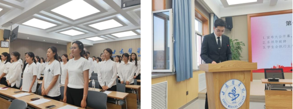 为深入学习贯彻习近平总书记关于青年工作的重要思想,强化学生组织成员的责任意识,增强学生组织干部队伍凝聚力,更好地发挥学生组织服务师生的作用,推动学生工作的顺利开展,甘肃医学院护理系于2024年5月23日在学院大学生创新创业录演大厅举办第三次学生代表大会。出席此次会议的领导有护理系党总支书记朱天荣,护理系办公室主任刘磊,学生科副科长周薇,团总支书记李红强,护理系团总支副书记袁鹏飞、全体班主任辅导员,以及第二届学生会执行主席于舒宁同学。
