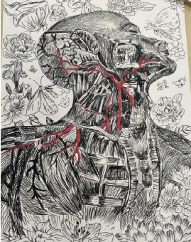 本次比赛作品主题鲜明,内容丰富多样,大赛自启动以来,得到全院学生的广泛关注与积极响应。参赛选手们以解剖学教材、标本观察为依据,凭借扎实的专业知识和娴熟的绘画技巧,精准勾勒人体骨骼、肌肉、脏器的形态结构,部分作品还通过色彩分层、立体标注等创新手法,直观呈现了人体系统的关联与功能,既保证了学术的准确性,又兼具艺术感染力。经过严格筛选与综合评定,最终评选出了一等奖一名,二等奖三名,三等奖五名,优秀奖七名。