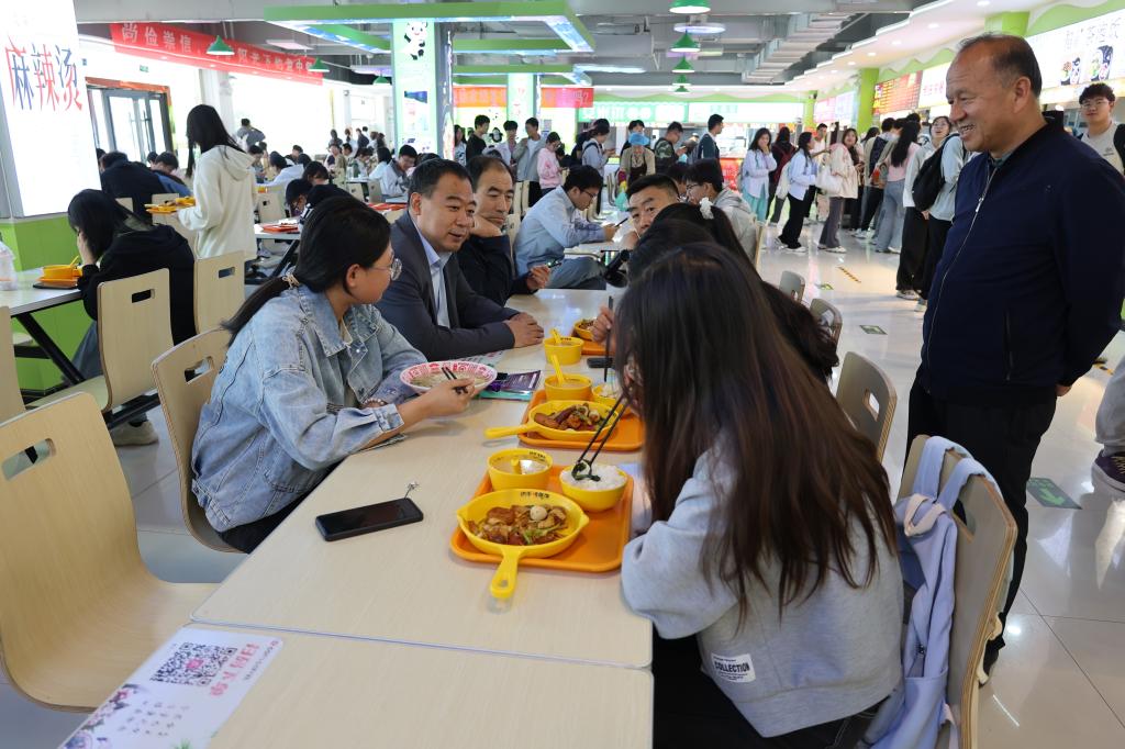 为贯彻落实校园餐饮管理要求,进一步保障学校食品安全,不断提高伙食质量,持续提升餐饮服务水平,6月6日中午,党委委员、副院长刘凯深入学生餐厅与同学们共进午餐,了解同学们对餐饮的意见和建议,解决同学们在用餐过程中遇到的问题。