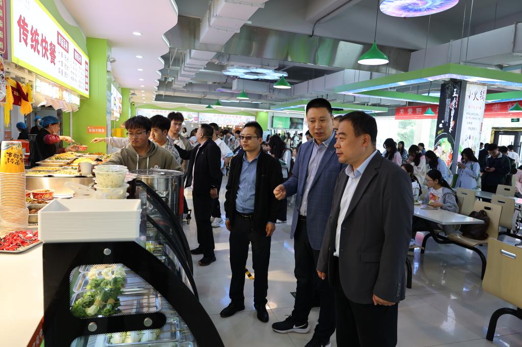 校领导实地查看了学生二餐厅各个档口的经营情况和饭菜质量,与基本建设与后勤管理处负责人及餐厅经营企业经理进行交流,详细检查了餐厅原材料采购、餐具消毒、食品留样、环境卫生、从业人员健康证等环节;随后,校领导来到自选餐档口,排队刷卡取餐,与同学们同桌就餐,询问饭菜是否可口、价格是否满意,并嘱咐同学们要均衡饮食、注意营养搭配、践行“光盘行动”。
