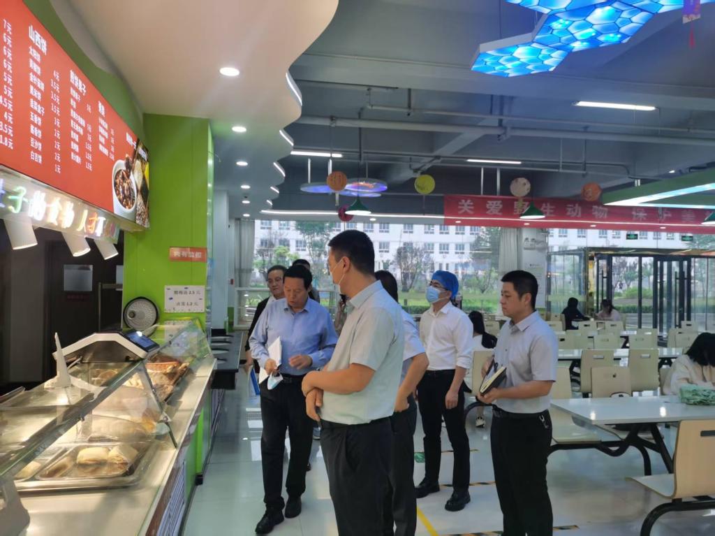 8 月 26 日下午,党委委员、副校长练成一行深入学生第一、第二餐厅、超市实地察看。重点围绕后厨冷冻食品安全情况、食堂整体卫生状况展开细致检查,同时对食品的质量与数量、原材料采购及留样管理等关键环节进行了全面核查,并对检查过程中发现的问题提出限期整改。