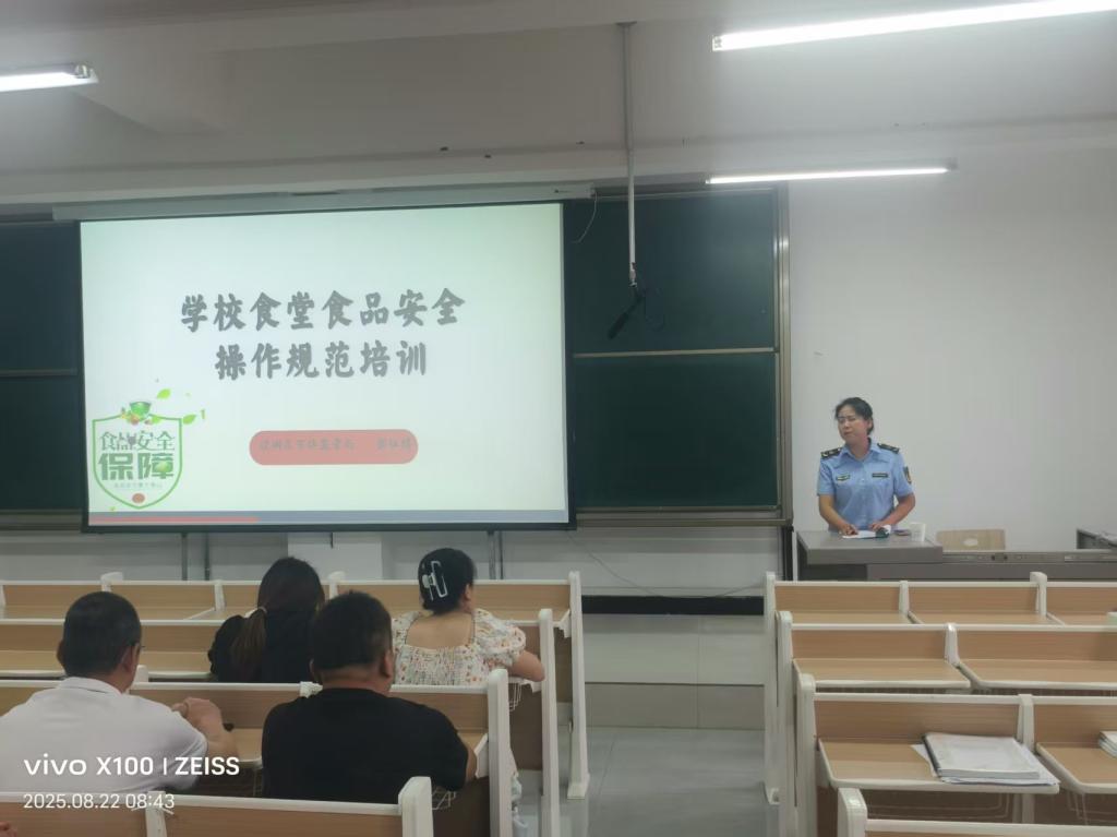 8 月 22 日,学校后勤管理处与保卫处协同开展校园服务行业安全培训,针对食堂、超市、浴室等场所的管理人员及从业人员,重点讲解安全管理要点与实操技能,筑牢校园安全屏障。