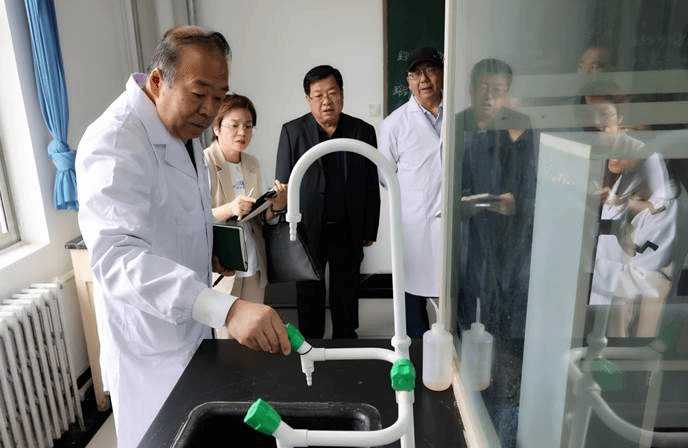根据《甘肃省教育厅关于组织开展 2023 年高等学校实验室安全检查工作的通知》精神和《甘肃省教育厅关于组织开展 2023 年度高等学校实验室安全现场检查的通知》安排,5月25日,省教育厅2023年度高校实验室安全检查组组长、甘肃中医药大学副校长、教授王新华,检查组成员、兰州理工大学实验室建设与管理处原处长、正高级工程师牛显明,天水师范学院化学工程与技术学院副处长、教授李志锋,检查组观察员、兰州大学实验室与设备管理处科长马旭炅一行4人,前来学院开展2023年度实验室安全工作现场检查。学院院长王坤,纪委书记杨建福,教务处、国资处、基本建设与后勤管理处、保卫处等相关负责人陪同检查。