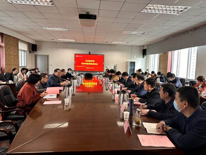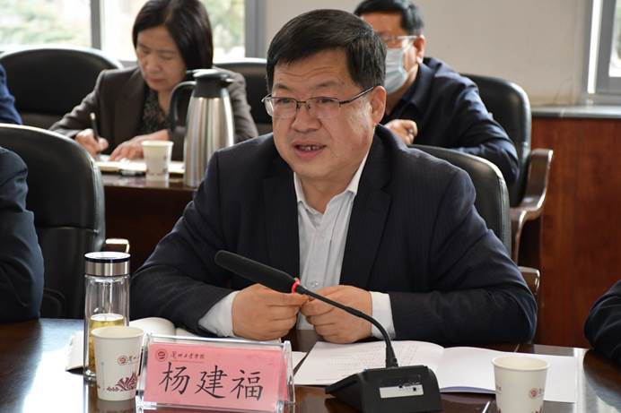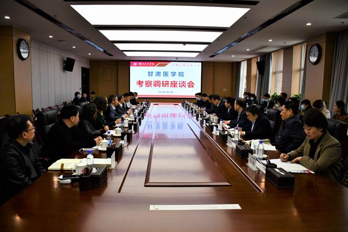 在考察兰州文理学院座谈会上,兰州文理学院校长郑伟强对学院考察学习组一行表示欢迎,并就兰州文理学院坚持差异化发展、服务甘肃文化大省、旅游强省建设,着力打造“文化、旅游、传媒、艺术”办学特色和转型发展情况作了简要介绍,重点就本科教学工作合格评估的支撑材料、数据库填报、加强学科专业课程建设的经验做法作了交流。杨建福代表学院,介绍了学院发展建设和迎评促建工作推进情况。他表示,兰州文理学院紧盯区域文旅、传媒、艺术产业发展,服务甘肃文化大省、旅游强省建设,聚焦赋能服务区域文旅、传媒、艺术产业发展,办学特色显著,为服务甘肃地方经济社会发展培养了一大批优秀人才。兰州文理学院和甘肃医学院同为甘肃兄弟院校,两校办学历史相近,学科专业方向互补,希望两校进一步加强交流,共同探索应用型本科院校发展之路,为建设幸福美好新甘肃作出新的更大贡献。