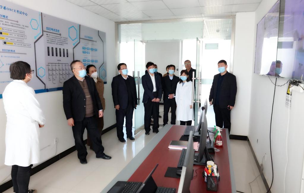 随后,李教授深入科技楼人体科学馆、1号实验楼解剖实验室、分子生物学实验室、2号实验楼奥斯卡考试中心和模拟手术室、皇甫谧针灸学院实训中心、图书馆、附属医院、临床医学系、护理系,逐一对考察点进行现场指导点评,听取评建办材料组、支撑材料组、数据组相关工作和观测点牵头单位负责人汇报。在指导过程中,李教授通过听取情况介绍、查阅资料、谈话问询、听课等多种形式,详细了解了学院评建工作,指出存在的问题,并对问题进行深入分析,提出针对性解决意见。