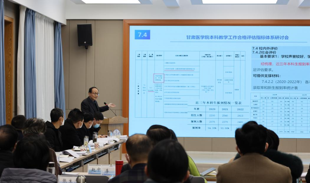 在第二阶段前期自评自建和督导检查的基础上,1月10日,学院利用一整天时间,召开本科教学工作合格评估观测点评建成效第一次研讨会,逐一听取 39个观测点牵头责任单位负责同志的工作汇报,掌握工作进展情况,梳理存在的问题和短板弱项,研究提出解决的措施和办法。学院院长王坤,纪委书记杨建福,副院长、附属医院党委书记雷鹏举,各部门、院系负责人,附属医院评建工作负责人,联络员,各评建专项工作组组长、副组长,评建办全体工作人员参加会议。