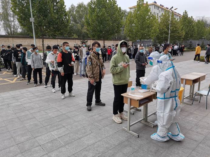 核酸检测是疫情防控的重要手段。按照《甘肃省强化常态化核酸检测及查验的实施方案》规定,坚持“凡门必查、凡人必验”的要求,学院防控办及时优化核酸检测方案,调整核酸检测安排,对在校生以宿舍为单位,按照编号,安排院系负责组织、核查人数,附属医院进行核酸检测,每四天一轮;全体教职工、各类从业人员统一组织,隔日进行核酸检测。学院防控办负责人说,每天晚上十点左右,学院疫情防控领导小组群里都会上报当天核酸抽检人数,遇有特殊情况,随时上报、随时分析研判。