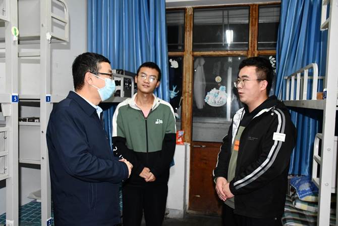 “近期疫情形势严峻,同学们要做好个人防护。”“生活、学习中还有什么困难?”为更好地了解学生对学校工作的意见建议,及时发现解决学生诉求,学院建立完善领导干部“包保”常态化工作机制,校级领导、处科级干部联系院系、学生公寓楼、班级和宿舍,党政主要领导干部带头深入学生公寓,了解学生思想动态,生活、学习等方面存在的困难和问题,宣传疫情防控政策,实地察看学生生活环境和校园临时留观点设置,了解防疫物资采购储备,现场解答、督办解决学生提出的困难和诉求,确保校园安全稳定。