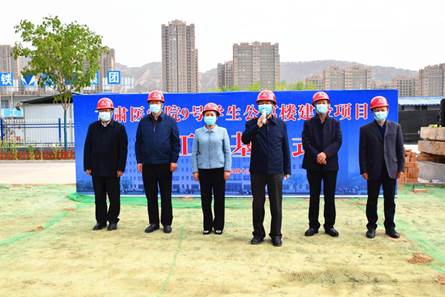 4月13日上午,甘肃医学院举行9号学生公寓楼奠基仪式。学院领导高淑美、崔安平、李诚、杨建福、雷鹏举出席,院长王坤宣布开工。