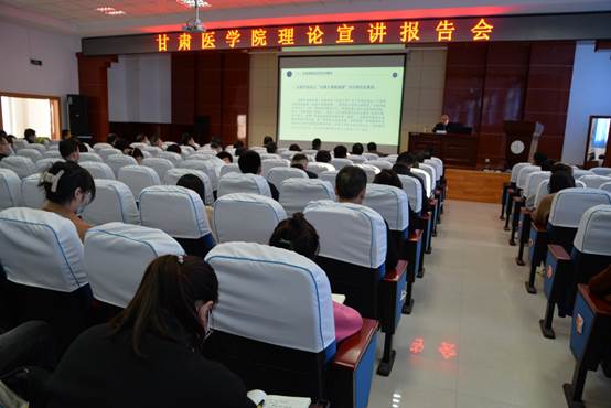 王华存结合自己的学习思考,围绕深入领会新发展理念的内涵要义、坚持新发展理念是经济社会发展必须遵循的原则、以新发展理念引领甘肃经济社会高质量发展3个方面,系统解读了新发展理念的历史基础、新发展理念的内涵及相互关系,深刻阐述了贯彻新发展理念的新要求,同时对我省贯彻新发展理念提出了许多具有建设性的意见和建议,也对甘肃医学院近年来发展给予肯定。宣讲报告立意高远、系统全面、内涵丰富、主题突出,对于师生更加深刻理解和准确把握习近平总书记系列重要讲话精神,完整准确全面贯彻新发展理念,增强从政治上看教育、从民生上抓教育、从规律上办教育的思想自觉、行动自觉,深入实施“十四五”规划,转变观念,守正创新,乘势而上,加快高质量发展,具有很强的指导意义,让与会师生进一步深化了认识、开阔了视野、增强了信心、鼓舞了干劲,为推动学院“十四五”各项事业高质量发展注入了强大动力。